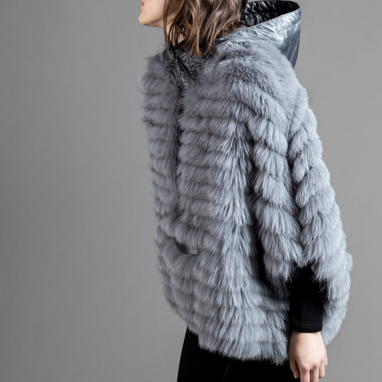 REVERSIBLE FUR JACKET WITH CROPPED SLEEVES