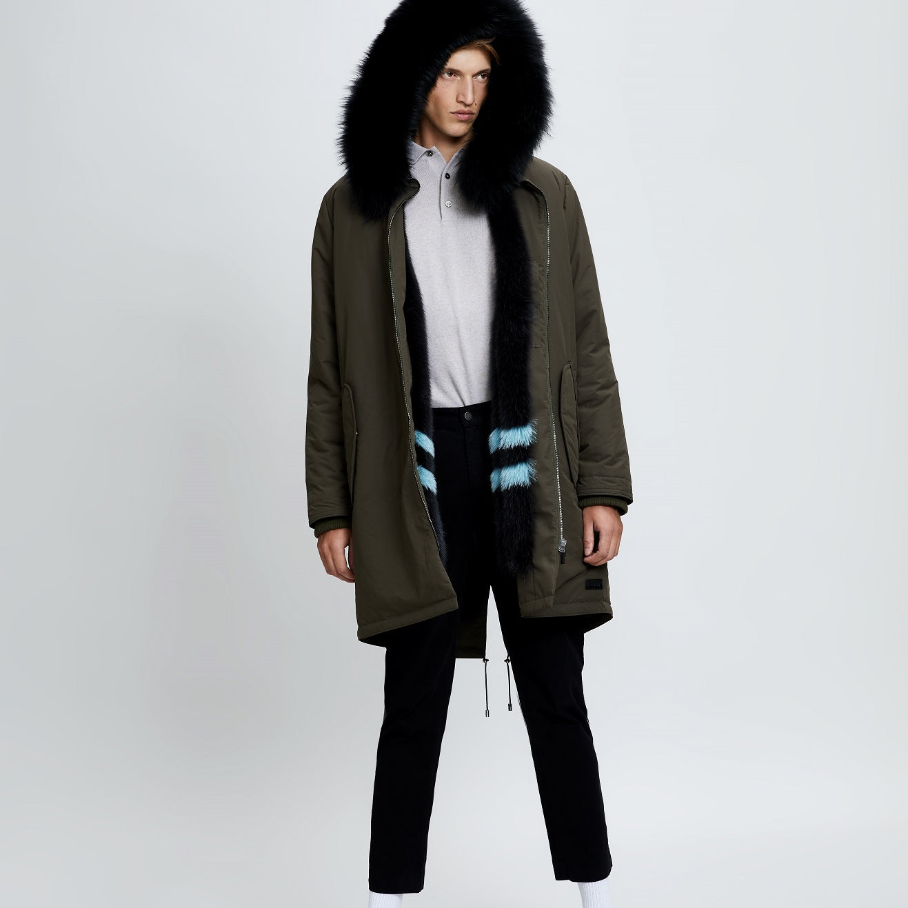 MEN'S LONG PARKA WITH FOX FUR LINING AND FINNRACCOON