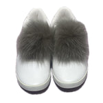 Gemmi's fox fur sneaker patches can be attached to your own sneakers. Pull the straps through the leather hoops on the back of the patch.