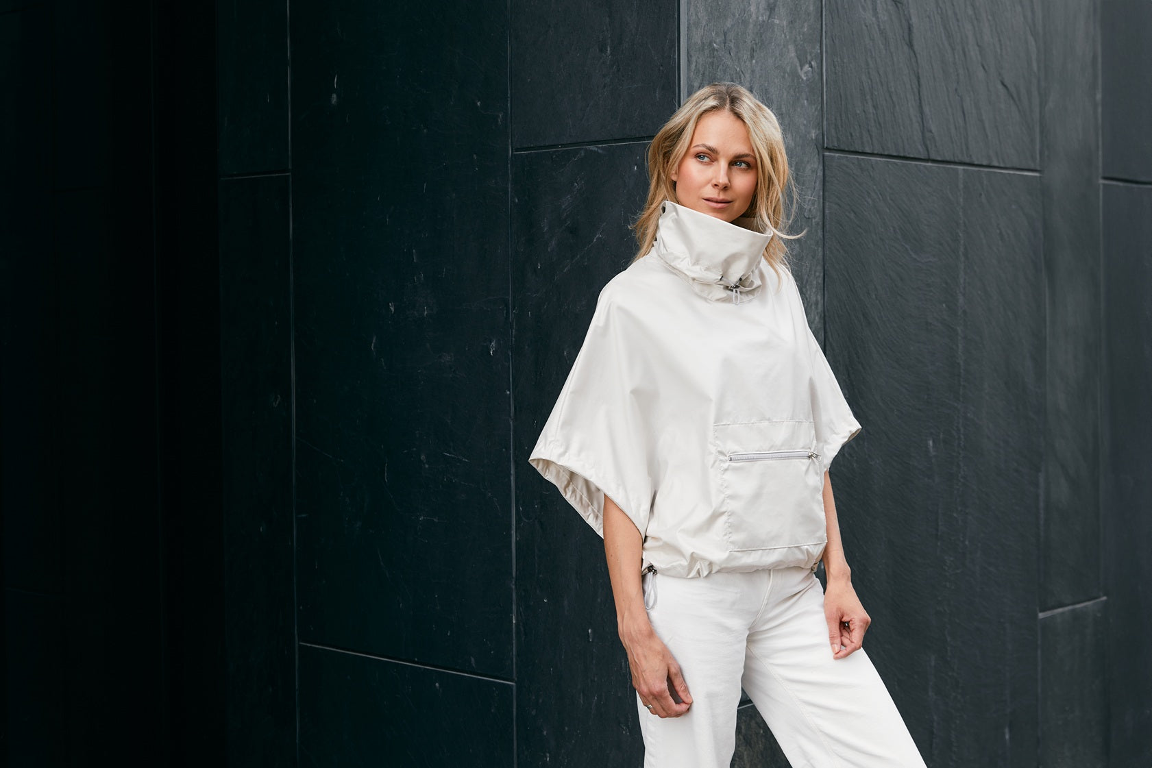- Oversized with drawstrings at the collar, hem and arm openings
