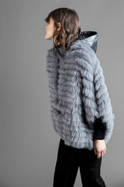 This reversible fox fur poncho is a fun, relaxed piece, perfect for the ski slopes or Winter walks. The poncho’s windproof material and luxurious fur will keep you warm and cozy.  The form of the poncho can be shaped with drawstrings at the hem and arm opening.