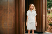 This hooded, sleeveless windbreaker anorak is very light. It fits in your handbag and is  the perfect cover when the weather changes. The style is contemporary and the fabric beautiful.